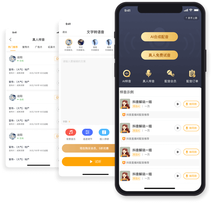 影視解說模式、自定義背景音、特效音、變聲、語速可調、智能斷句、多音字糾錯